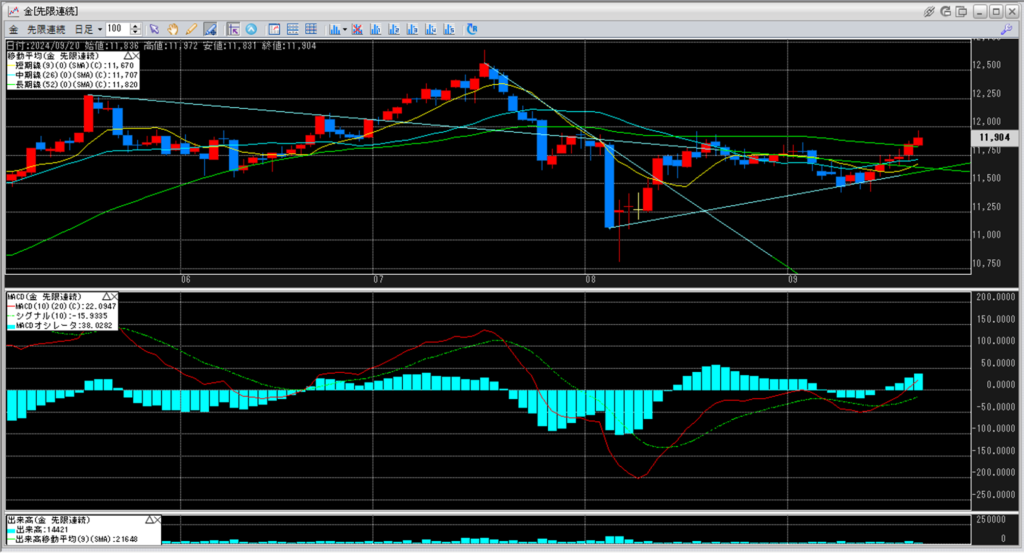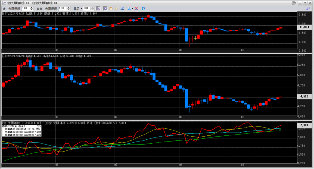 下記に金白金鞘の移動平均線のチャートを貼り付けています。