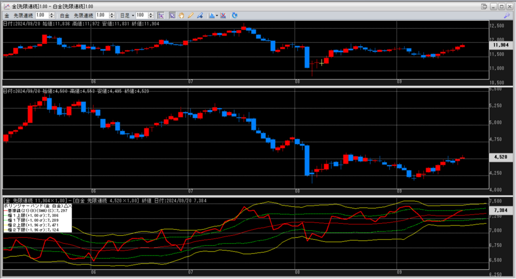 金白金の鞘をボリンジャーバンドで見ていきます。