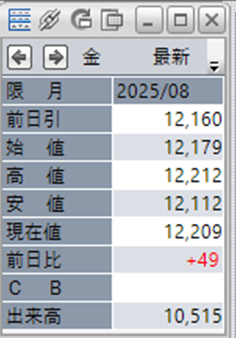 上:大阪取引所 金 2025年8月限 1分足
