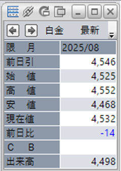 中:大阪取引所 白金 2025年8月限 1分足