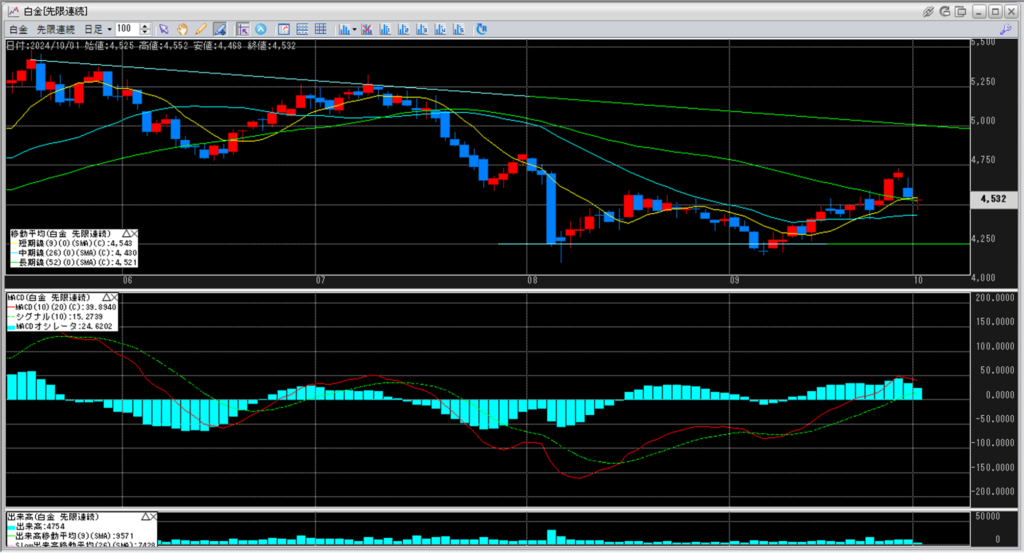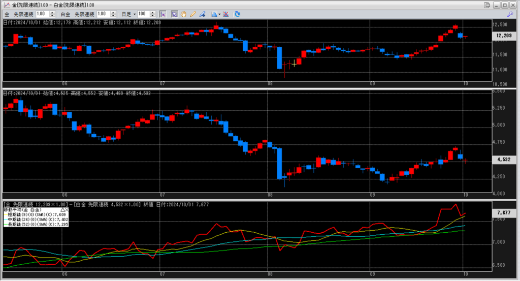 下記に金白金鞘の移動平均線のチャートを貼り付けています。