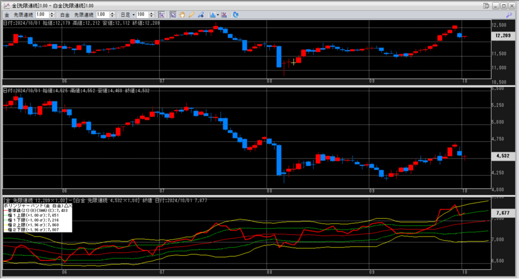 金白金の鞘をボリンジャーバンドで見ていきます。