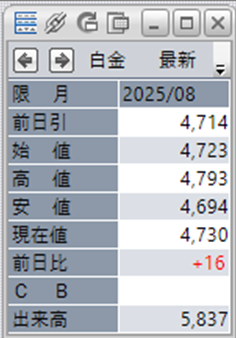 7月上旬に高値を付けたところからも、白金価格の下落が続いてきました。