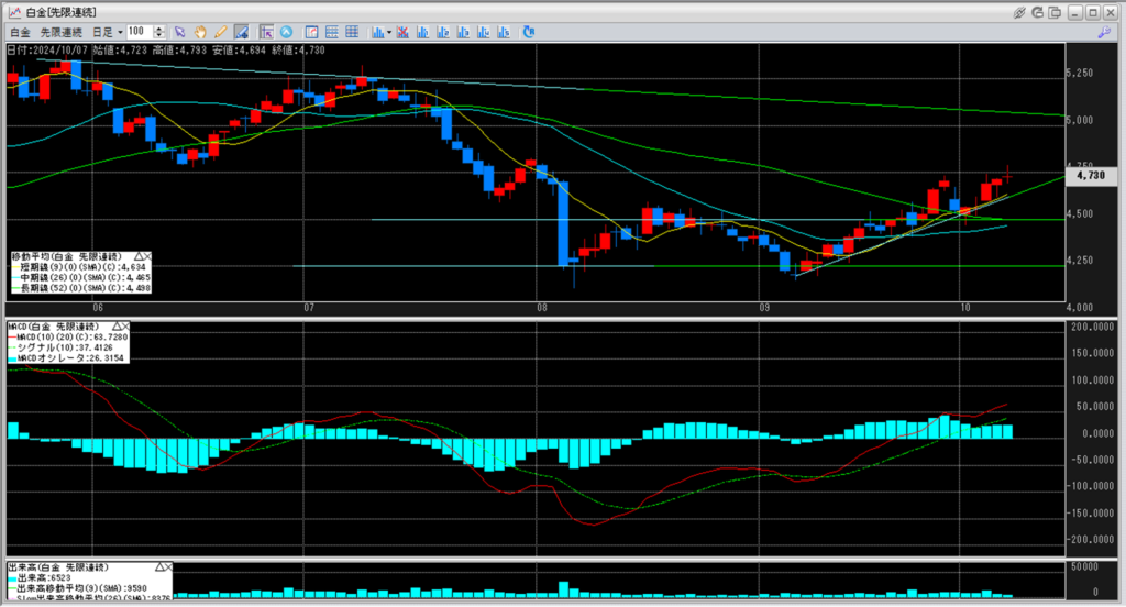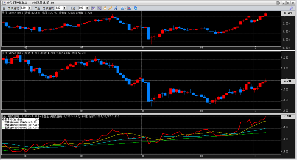 下記に金白金鞘の移動平均線のチャートを貼り付けています。