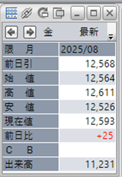 金価格は、6:00時点での終値は12,593円となっています。