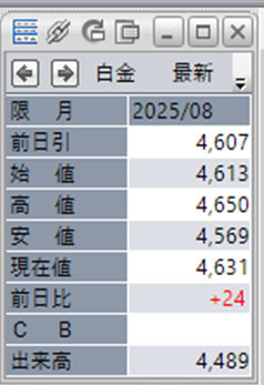 中:大阪取引所 白金 2025年8月限 1分足