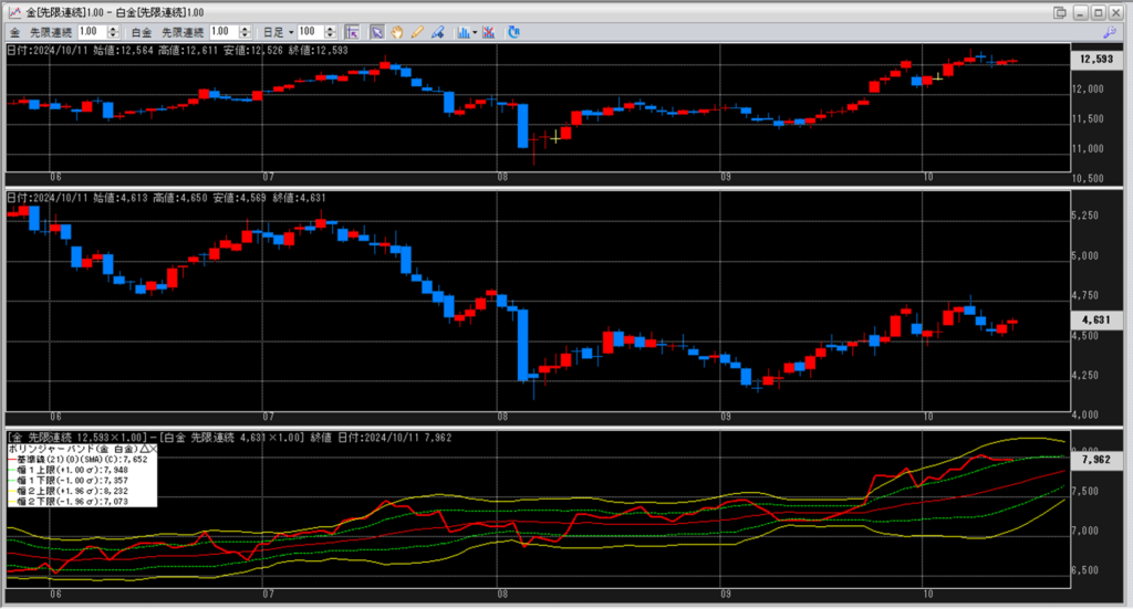 金白金の鞘をボリンジャーバンドで見ていきます。
