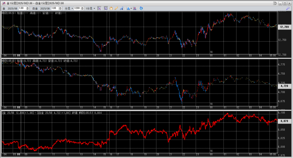 上:大阪取引所 金 2025年8月限 1分足
