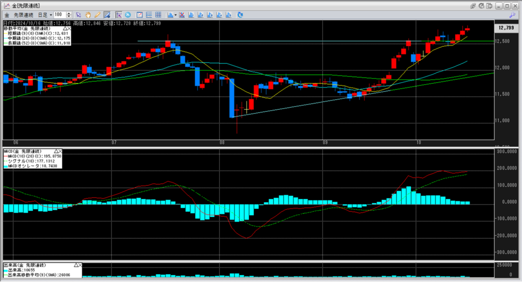 金価格は、6:00時点での終値は12,799円となっています。