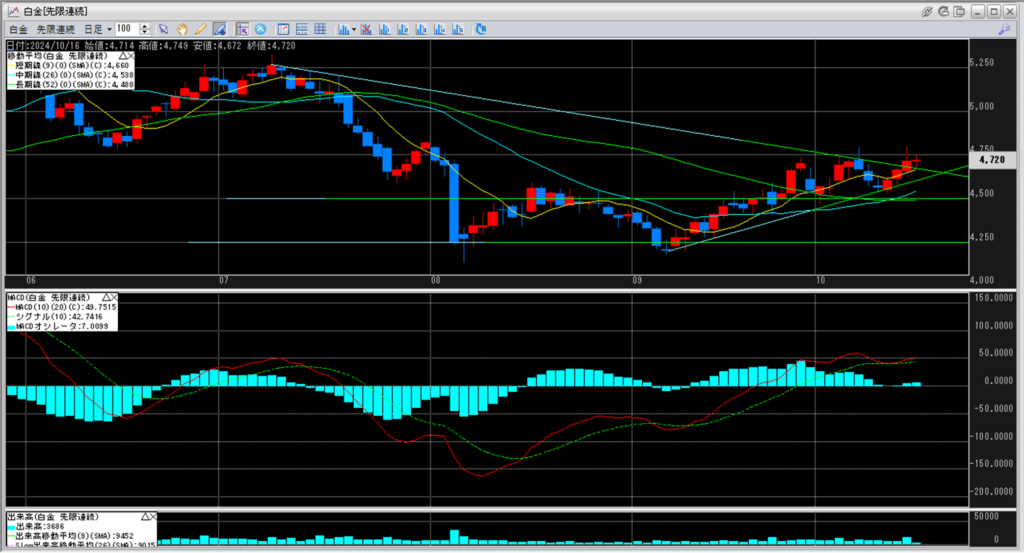 下げることなく折り返していますので、白金価格は意外と強いのかもしれません。