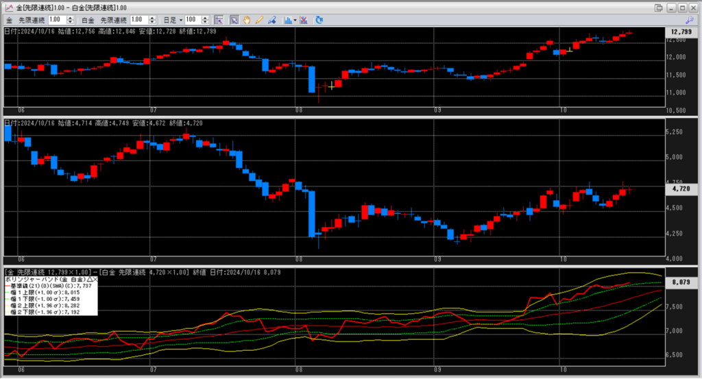 金白金の鞘をボリンジャーバンドで見ていきます。