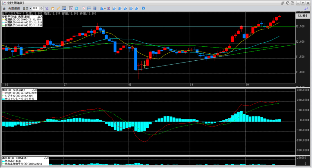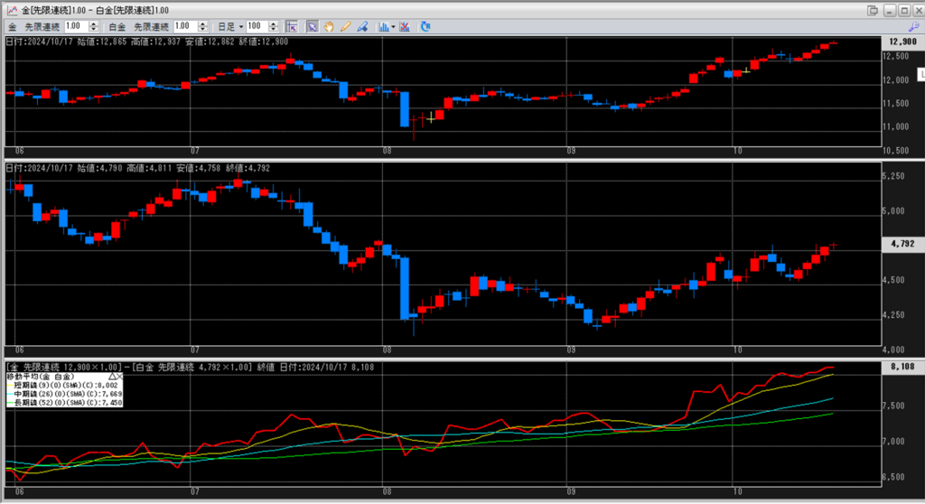下記に金白金鞘の移動平均線のチャートを貼り付けています。