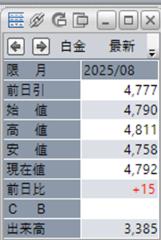 7月上旬に高値を付けたところからも、白金価格の下落が続いてきました。