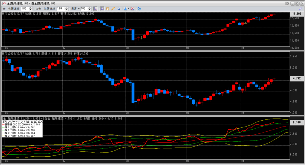 金白金の鞘をボリンジャーバンドで見ていきます。