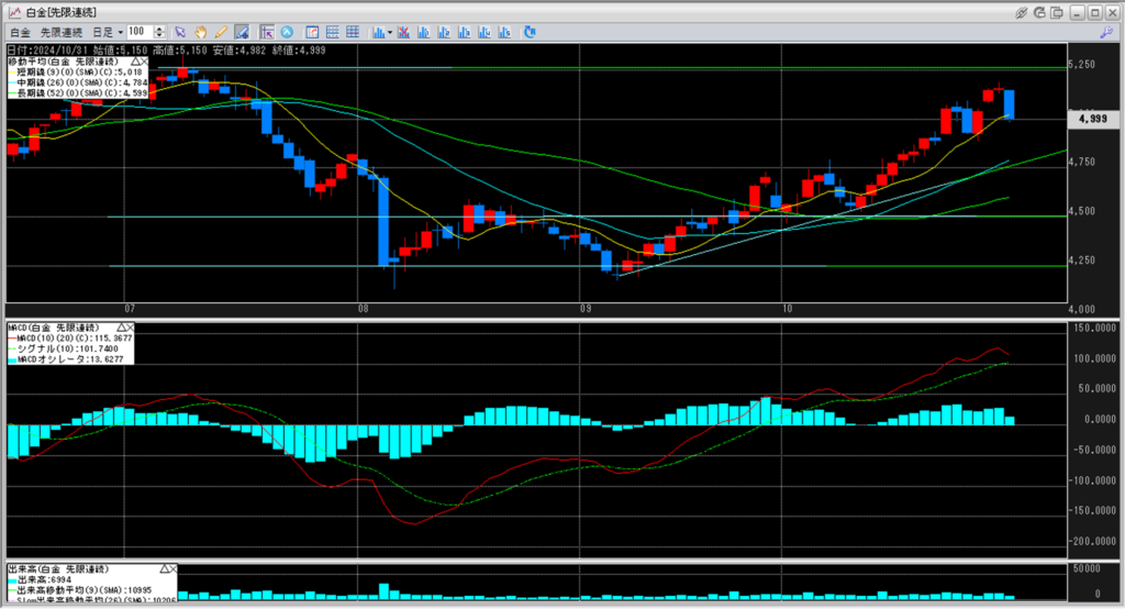 このまま短期線を割り込み、白金価格は下がってしまうのか。