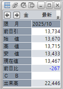 上:大阪取引所 金 2025年10月限 1分足