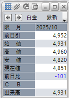 中:大阪取引所 白金 2025年10月限 1分足