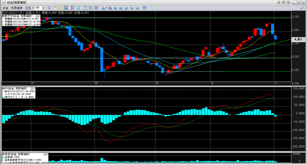 白金価格は、MACDにつられて下がってしまうのか。