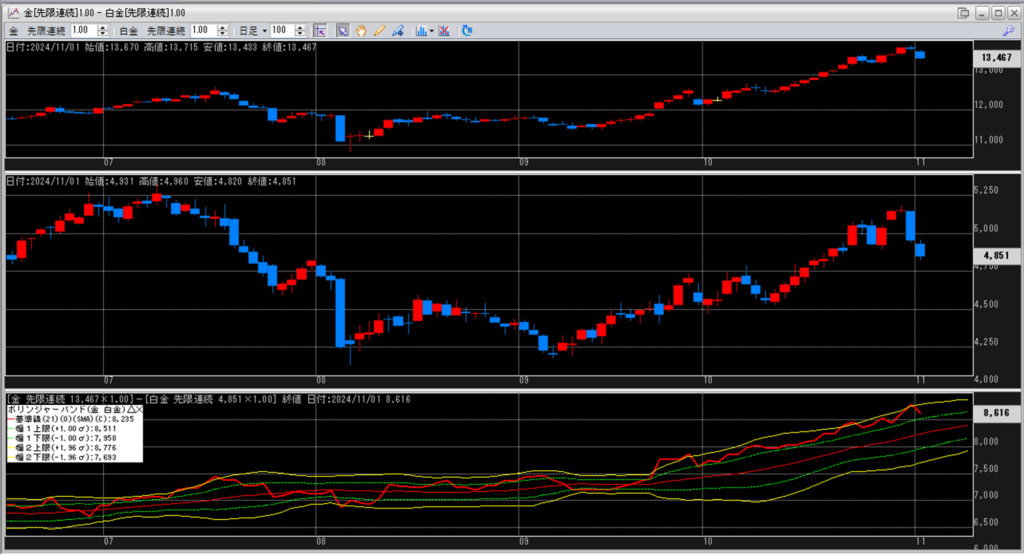 金白金の鞘をボリンジャーバンドで見ていきます。