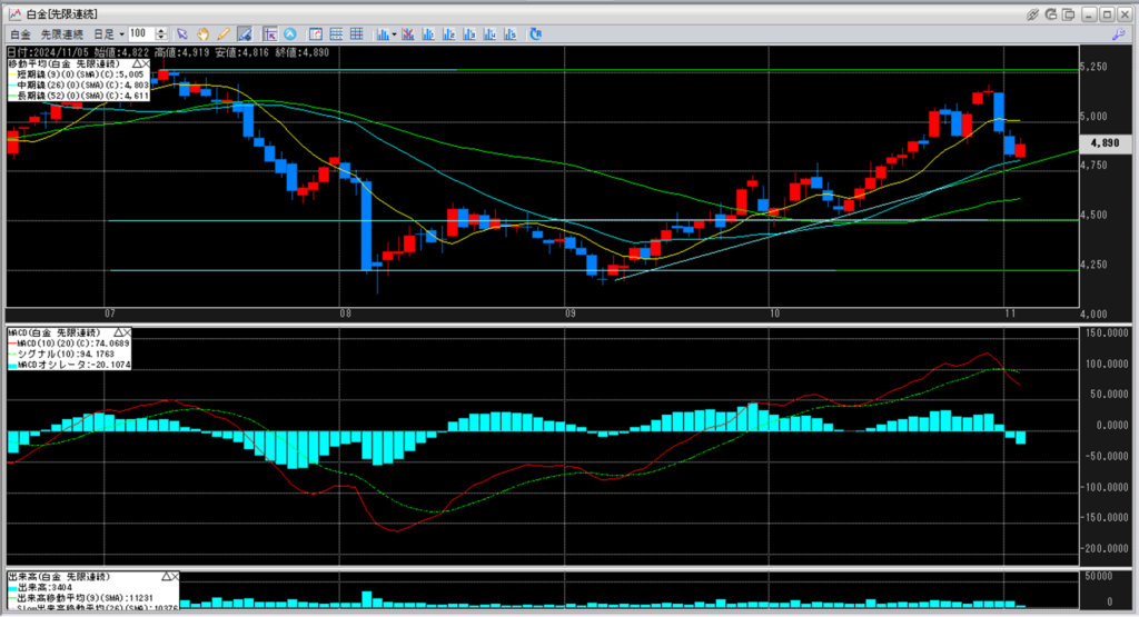このまま上昇トレンドを割り込み、白金価格は下がってしまうのか。