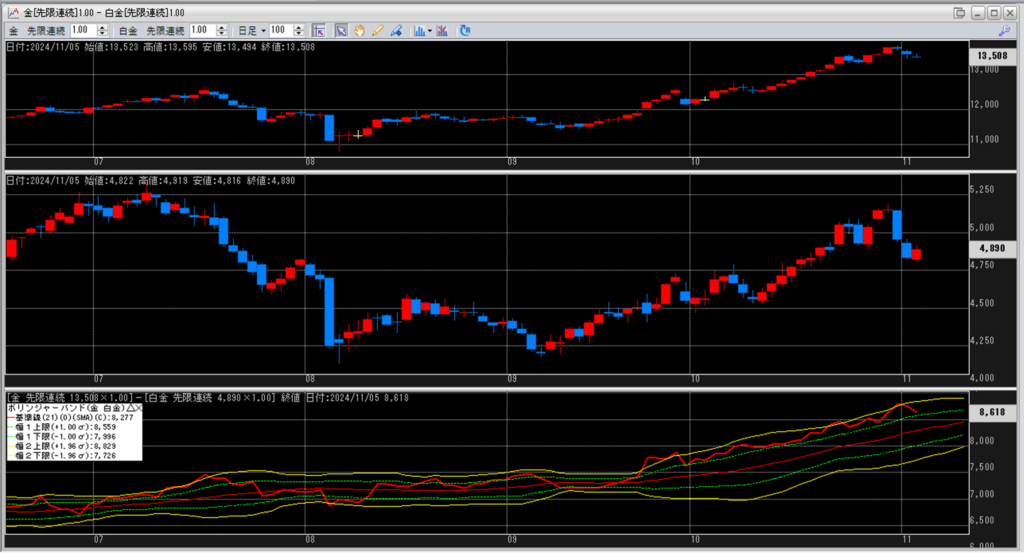 金白金の鞘をボリンジャーバンドで見ていきます。