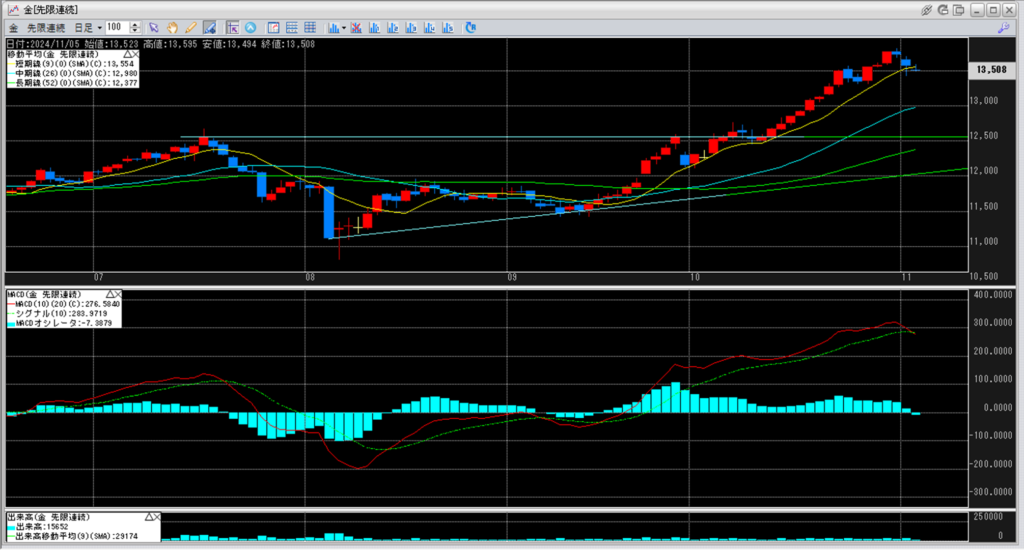 下記に金白金鞘の移動平均線のチャートを貼り付けています。