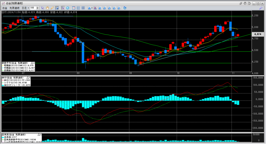 7月上旬に高値を付けたところからも、白金価格の下落が続いてきました。