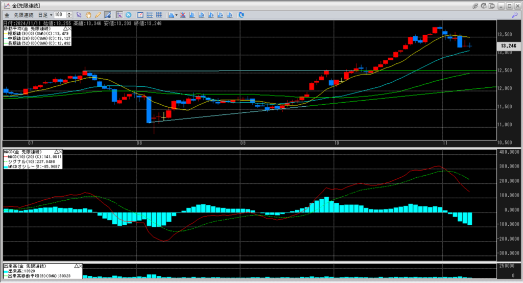 金価格は、6:00時点での終値は13,246円となっています。