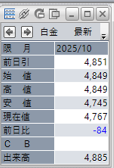 中:大阪取引所 白金 2025年10月限 1分足