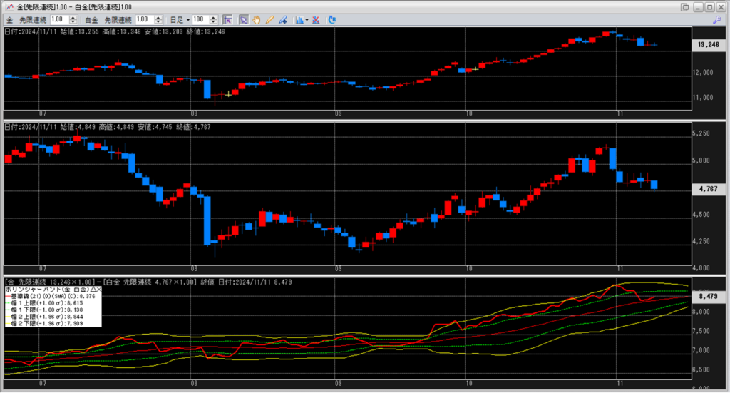 金白金の鞘をボリンジャーバンドで見ていきます。