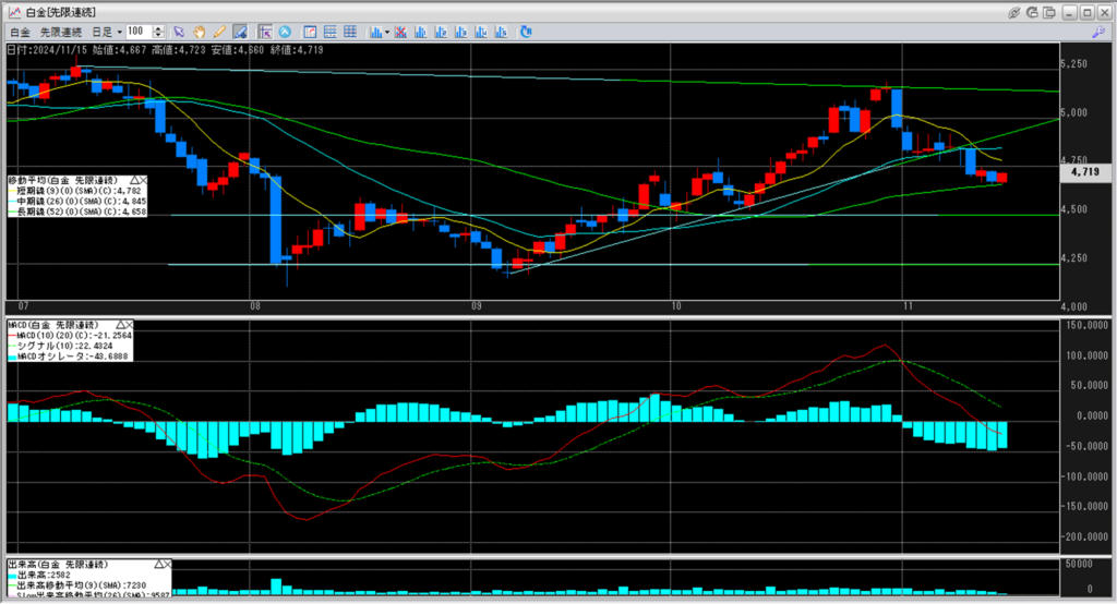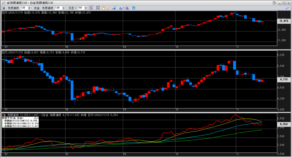 下記に金白金鞘の移動平均線のチャートを貼り付けています。
