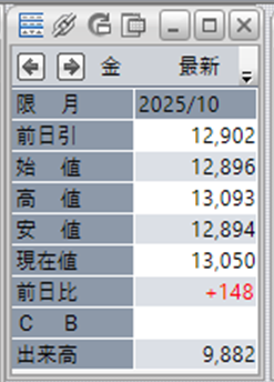 金価格は、6:00時点での終値は13,050円となっています。
