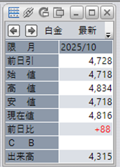 中:大阪取引所 白金 2025年10月限 1分足