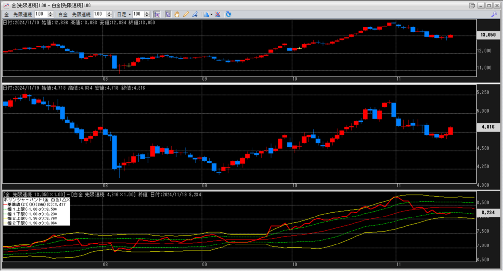 金白金の鞘をボリンジャーバンドで見ていきます。