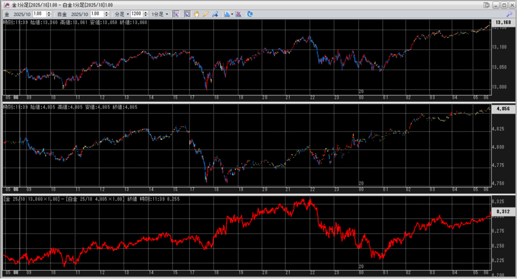 併せて、鞘拡大の仕掛け金買い1枚-白金売り2枚を1組と