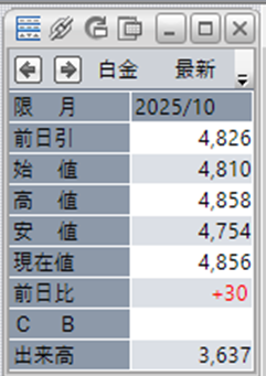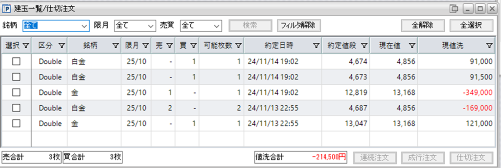 鞘縮小の仕掛け金売り1枚-白金買い2枚を1組を保持しています。