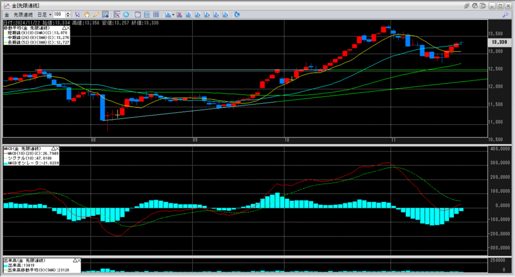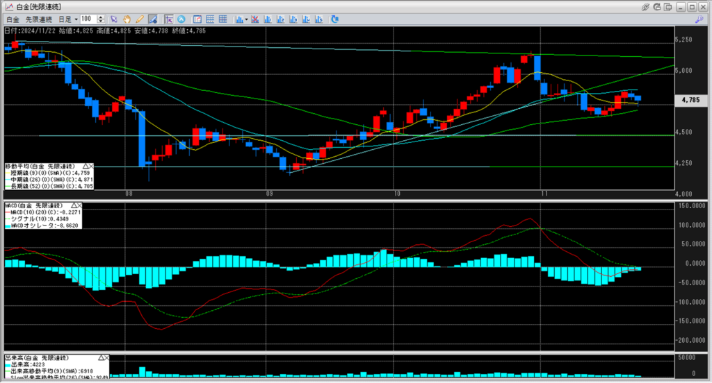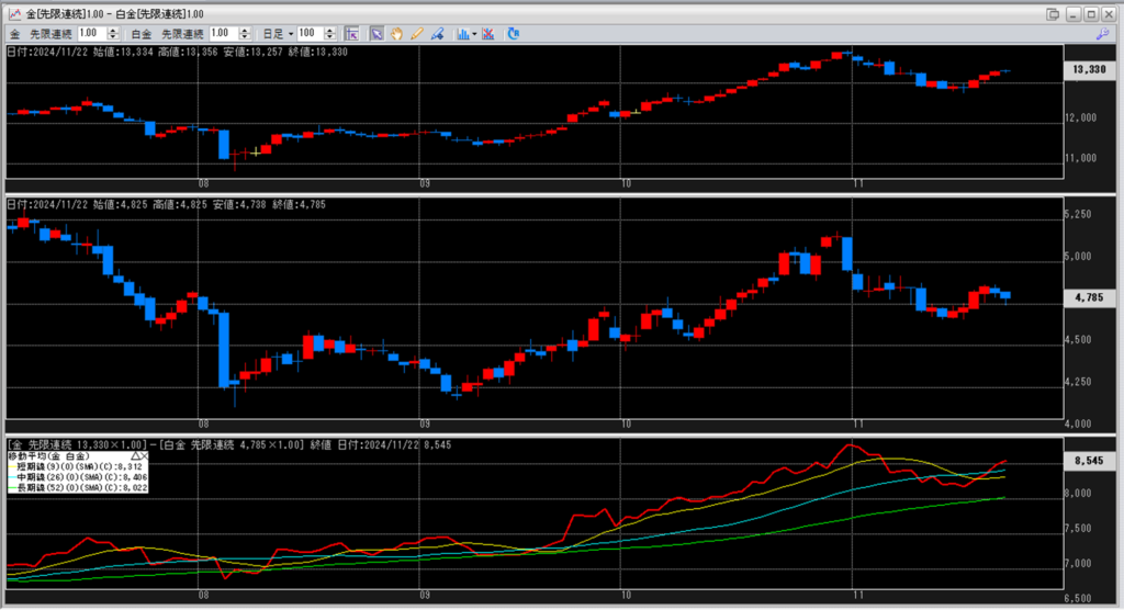 下記に金白金鞘の移動平均線のチャートを貼り付けています。