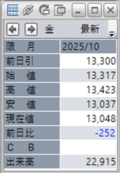 基準線である8,447円を割り込んだ8,383円で6:00の取引を終えています。