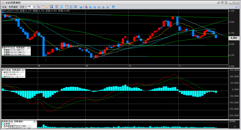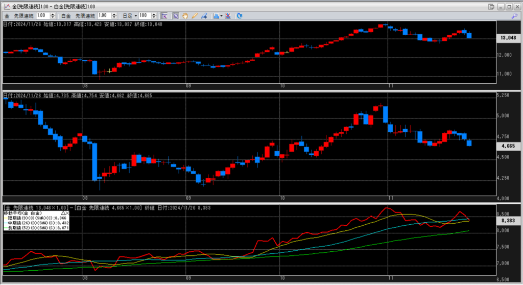 下記に金白金鞘の移動平均線のチャートを貼り付けています。