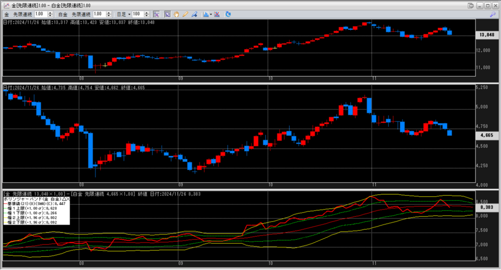 金白金の鞘をボリンジャーバンドで見ていきます。