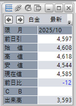 下記に金白金鞘の移動平均線のチャートを貼り付けています。