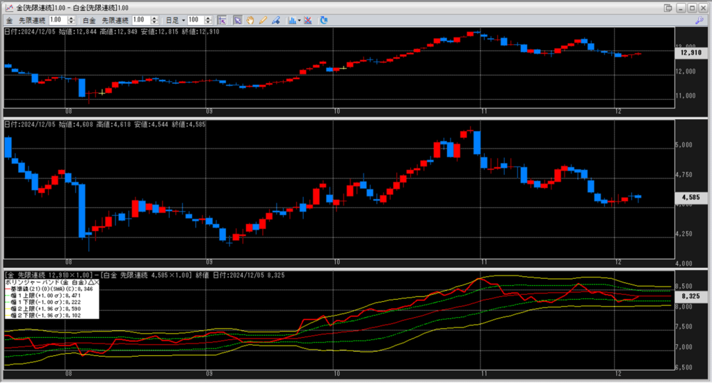 金白金の鞘をボリンジャーバンドで見ていきます。