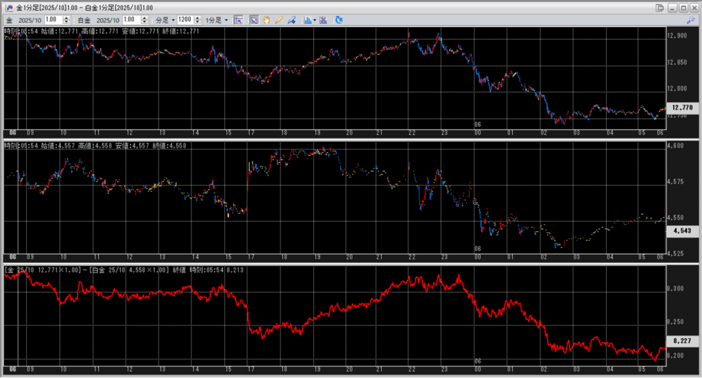 中:大阪取引所 白金 2025年10月限 1分足