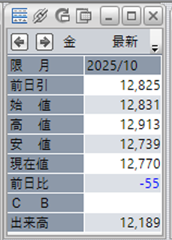 上:大阪取引所 金 2025年10月限 1分足