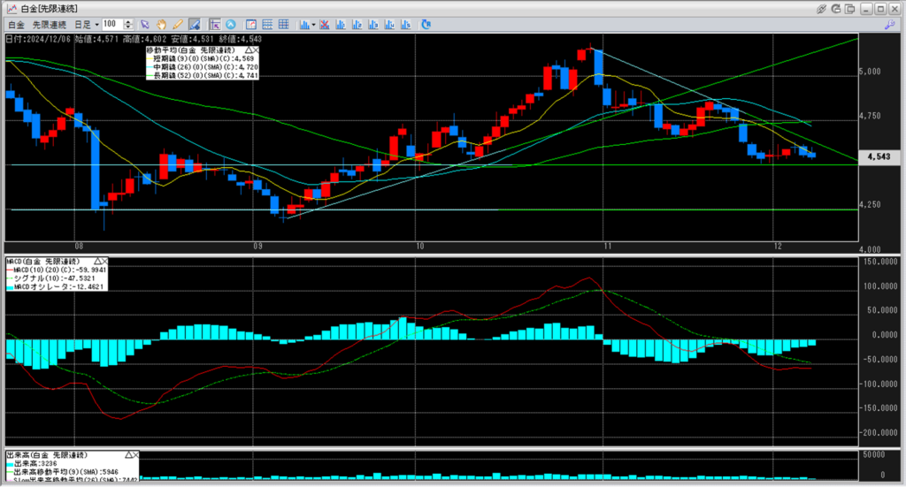 白金単体で見ると、前日比で-12円となっております。