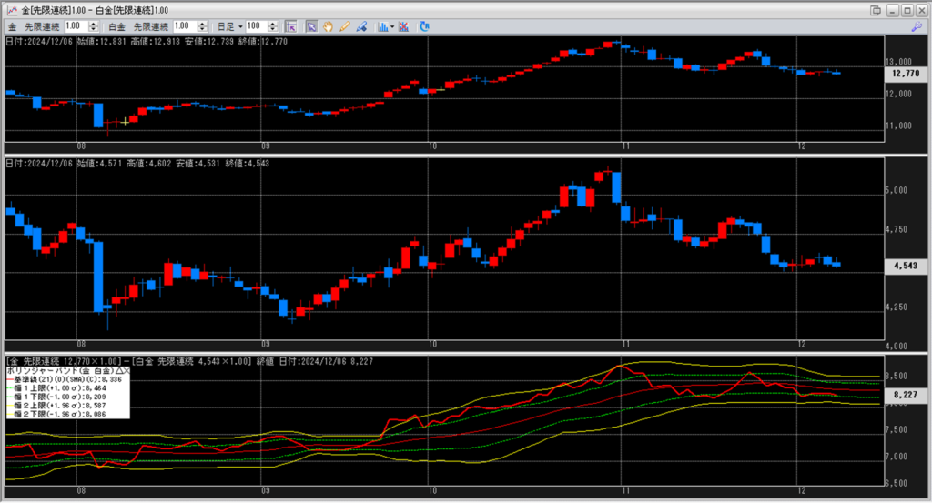 金白金の鞘をボリンジャーバンドで見ていきます。
