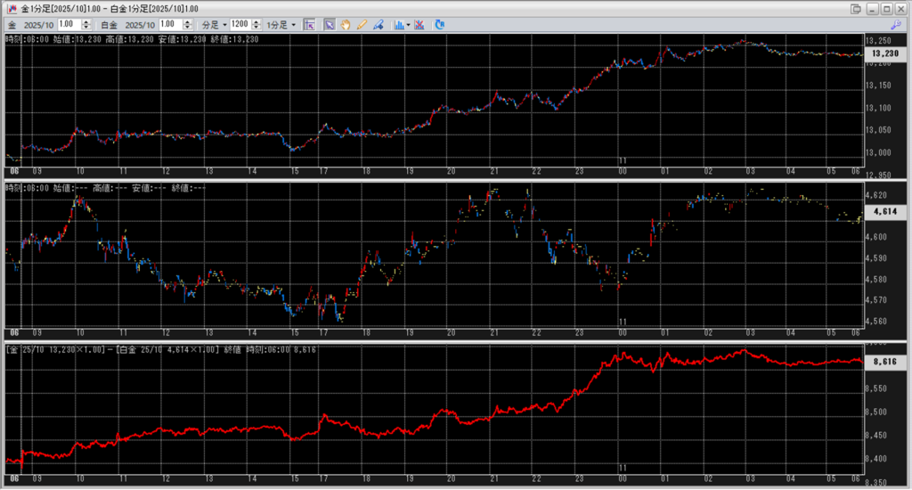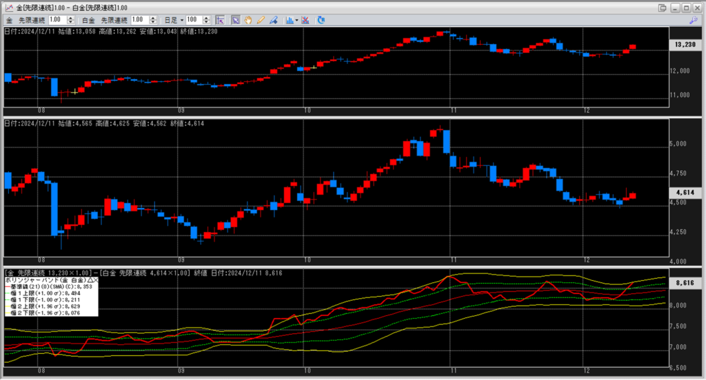 金白金の鞘をボリンジャーバンドで見ていきます。