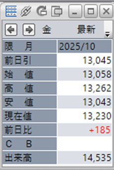 移動平均線の一番上に位置している中期線13,048円を越えて、