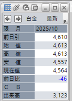 中:大阪取引所 白金 2025年10月限 1分足