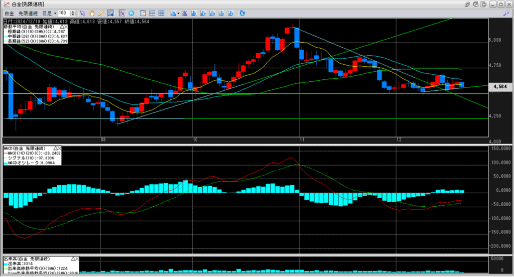 白金単体で見ると、前日比で-46円となっております。